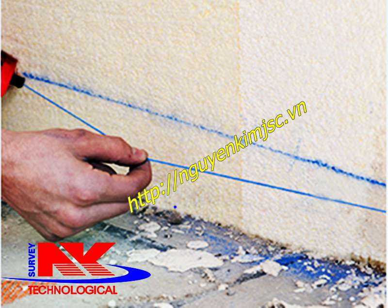 Sau khi dùng máy kinh vĩ hoặc máy toàn đạc điện tử đánh dấu trục bên ngoài công trình, để giảm thời gian thi công thì người xây dựng – các kỹ sư trắc địa sẽ tiến hành đánh dấu trục công trình ngay chính trên nền thực địa, nơi mặt bằng công trình để thi công trực tiếp các phần chi tiết và kết cấu công trình. Dòng mực in đậm xuống nền công trình đánh dấu tuyến và trục công trình phục vụ cho việc thi công rất nhanh, thậm chí còn giúp bảo toàn được trục công trình mà không cần phải chuyển ra ngoài khung định vị, thiết bị còn được dùng trong lắp đặt ván khuôn nến móng công trình. Chỉ với thao tác kéo dây và bật mực, chúng ta có thể thực hiện đánh dấu rất nhiều trục cùng một khối lượng công việc trong thời gian ngắn.