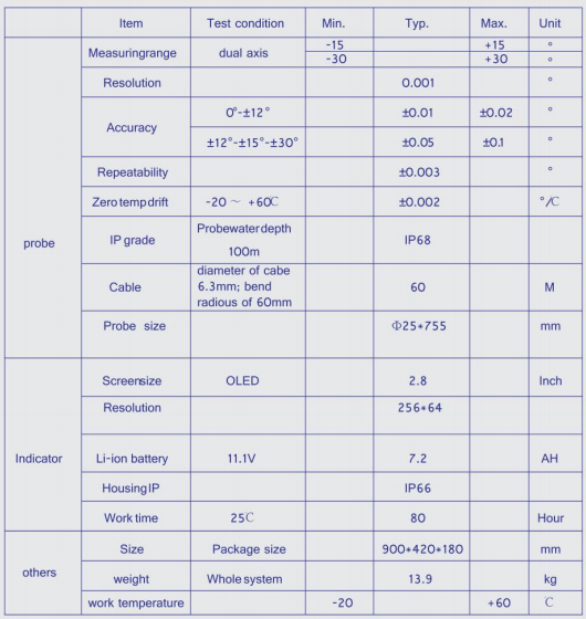 Hệ thống đo chuyển vị ngang ZCT-CX03-230E ghi số liệu liên tục cũng bao gồm ống dẫn hướng PVC bằng sợi thủy tinh với 4 rãnh dẫn hướng có phương vuông góc nhau và một loạt các thanh đo độ nghiêng quan trắc chuyển vị ngang, data log ghi số liệu.