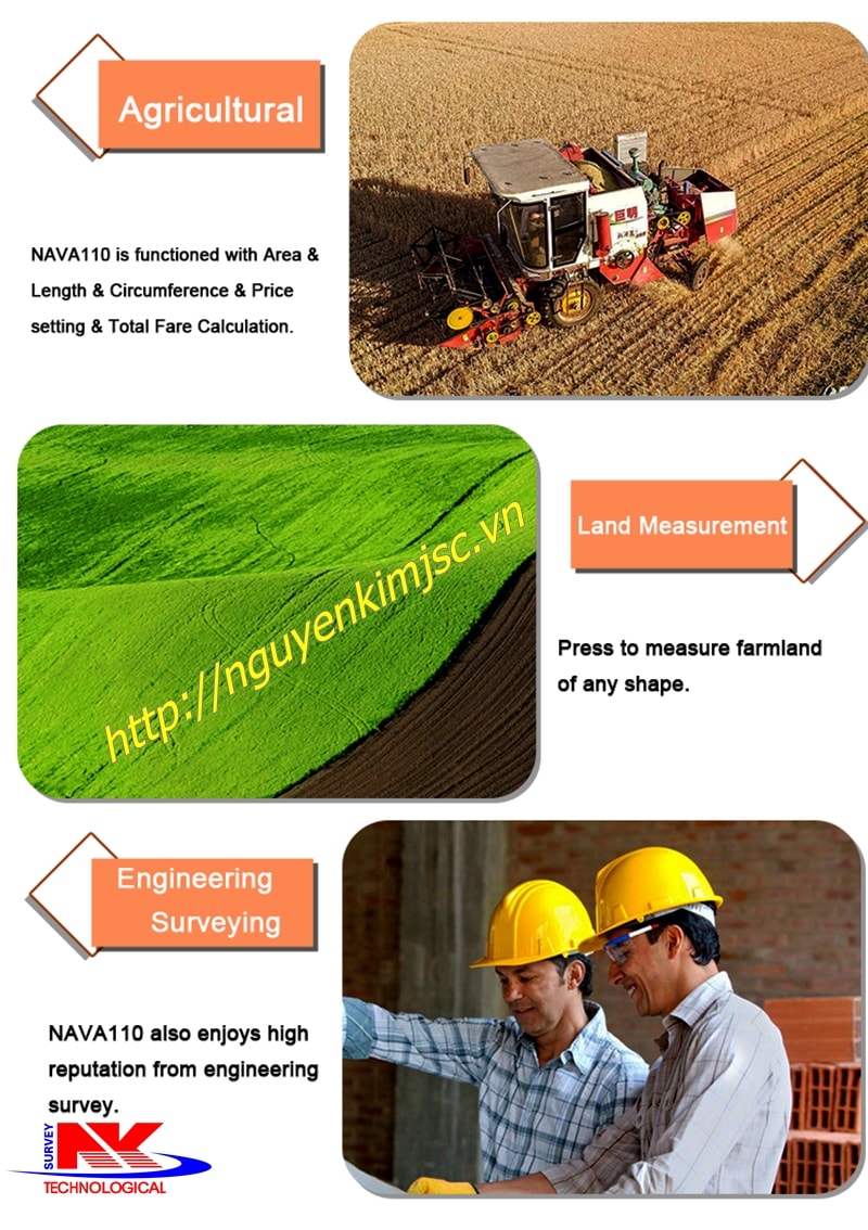 Máy được sử dụng rộng rãi trong nông nghiệp với thiết kế cầm tay sáng tạo, chi phí giá thành máy thấp. Máy ứng dụng phổ biến cho đo đất lâm nghiệp và nông nghiệp.