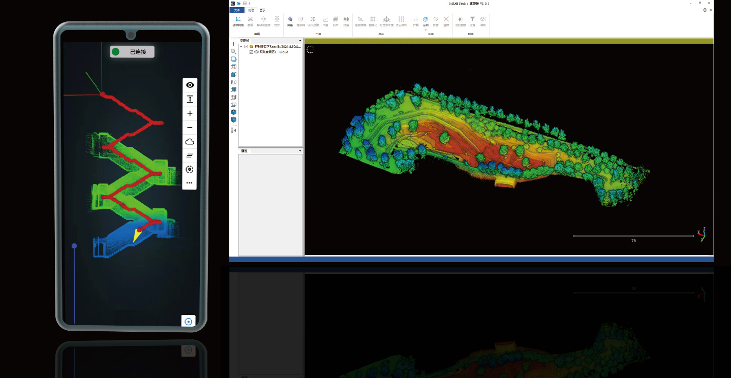 Dữ liệu đầu ra là các tệp đám mây điểm dày đặc phù hợp với nhiều phần mềm của các kỹ sư thiết kế cũng như kiến trúc trong xây dựng các mô hình đối tượng. Phần mềm xử GoSlam studio còn có chức năng tính toán khối lượng một cách nhanh chóng và hiệu quả trên cơ sở đám mây điểm.