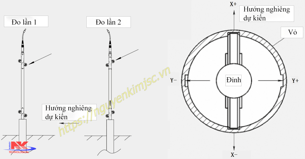 1.2.3 Đối với phép đo tiêu chuẩn, đầu dò cần được nâng hai lần từ dưới lên trên của vỏ máy đo độ nghiêng. Lần đầu tiên thường được gọi là phép đo thuận và lần thứ hai thường được gọi là phép đo ngược lại.