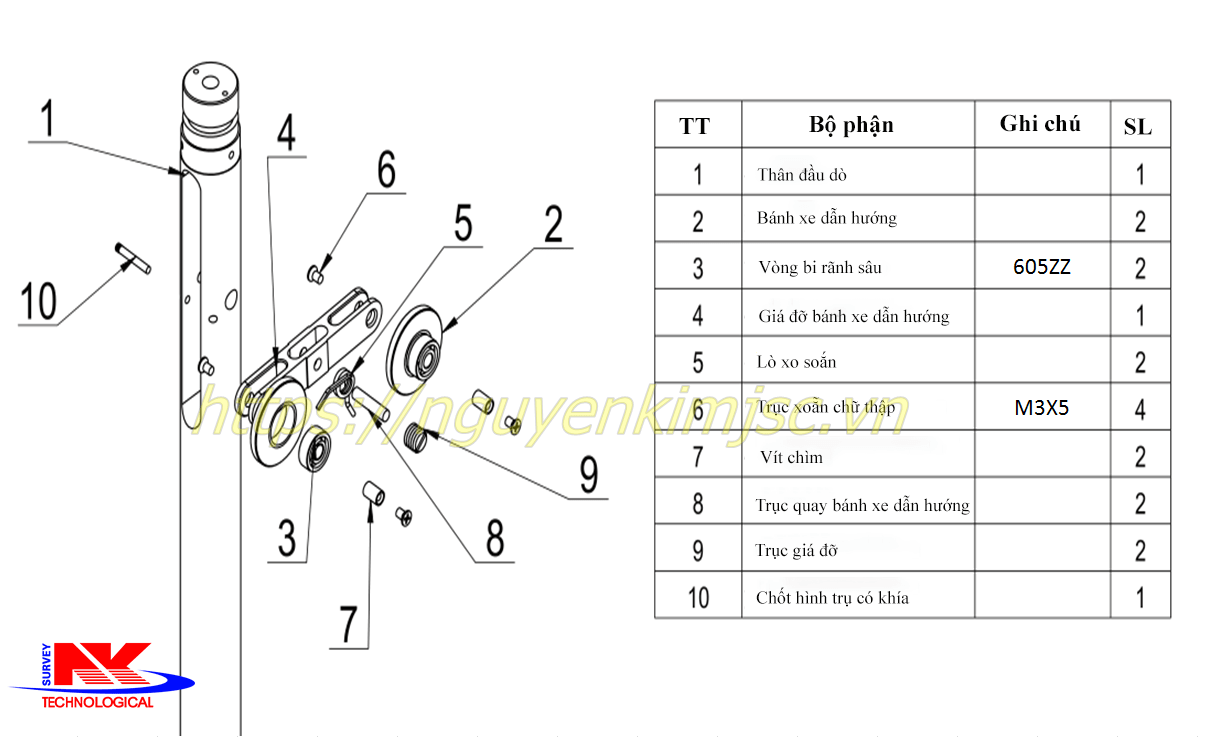 1.3. 6. Bộ bánh răng (ổ trục bánh xe và lò xo) là bộ phận dễ bị hỏng và cần được thay thế nếu mòn mỏi ảnh hưởng đến độ chính xác của phép đo. Xem hình dưới đây để biết phương pháp tháo rời.