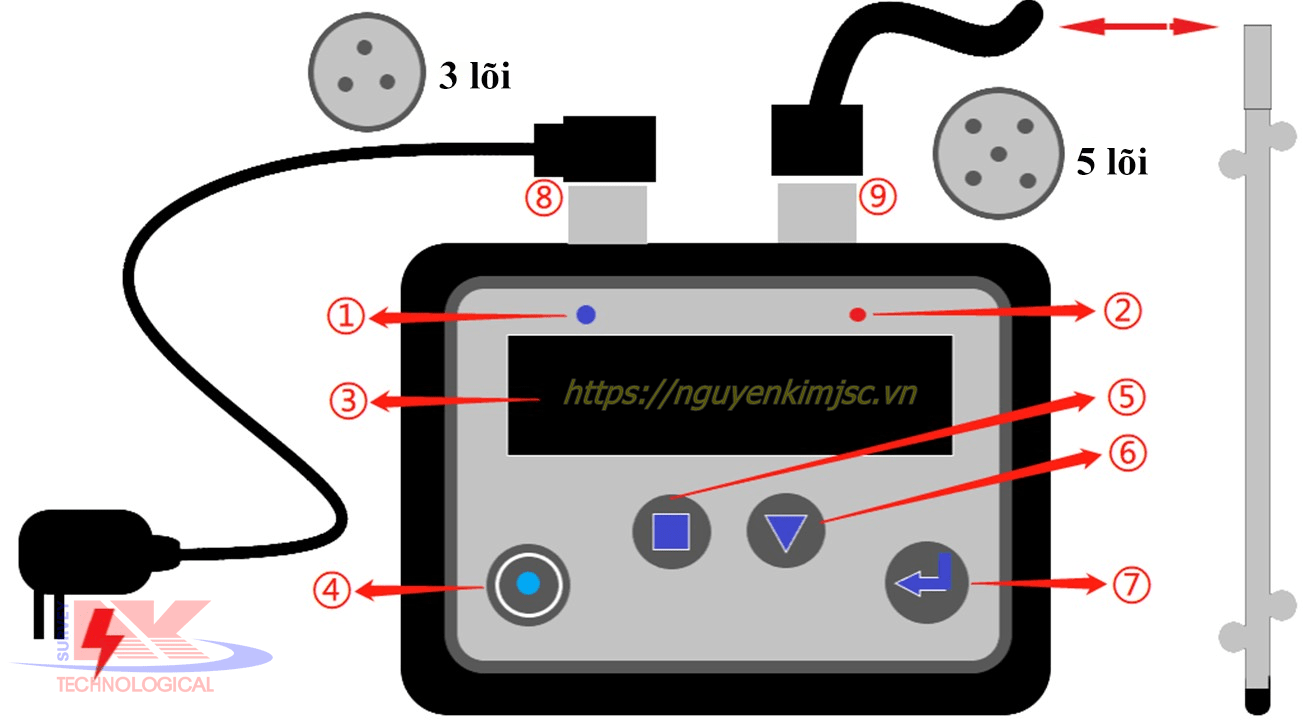 ⑨ Đầu nối 5 lõi để kết nối đầu dò