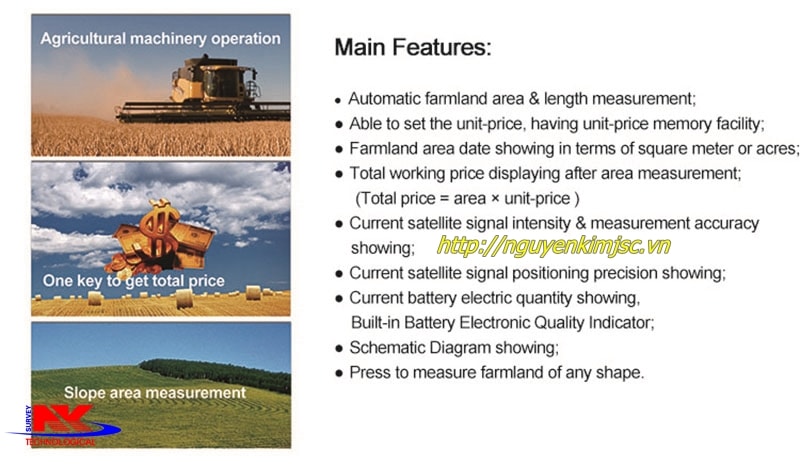 Máy được sử dụng rộng rãi trong nông nghiệp với thiết kế cầm tay sáng tạo, chi phí giá thành máy thấp. Máy ứng dụng phổ biến cho đo đất lâm nghiệp và nông nghiệp.