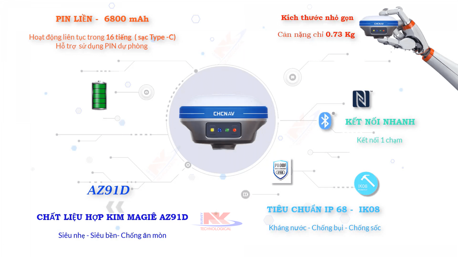 | Hiệu suất công việc tăng đến 30% Bù nghiêng công nghệ mới IMU lên tới 60 độ, không cần thiết phải cân bọt thủy trên sào đã trả về độ chính xác cao của vị trí điểm đo. Nó làm tiết kiệm thời gian, hiệu quả công việc tới 20% và tăng hiệu suất định vị chuyển điểm tới 30% |