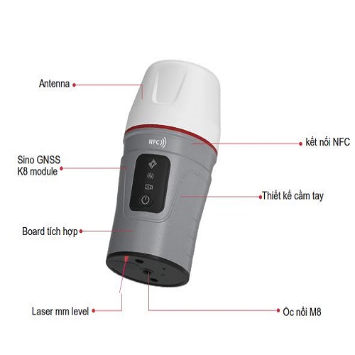 Venus được trang bị một tia laser ở mức milimet, có thể thay thế sào đo trong quá trình khảo sát và đo lường, đặc biệt là ở những nơi không an toàn hoặc khó tiếp cận đối với các cực. Do đó, nó mở rộng đáng kể phạm vi công việc và đảm bảo an toàn cho người dùng. Cảm biến IMU tích hợp với sự trợ giúp của các thuật toán tiên tiến, Venus có thể duy trì kết quả có độ chính xác cao với khả năng bù nghiêng. Nền tảng main K8 tích hợp với số kênh lên tới 1590 kênh, thu nhận tín hiệu từ tất cả các hệ thống vệ tinh, hỗ trợ SBAS và dịch vụ PPP. Kích thước siêu nhỏ, gọn (80x70x150 mm), trọng lượng siêu nhẹ chỉ 380g. thiết kế cầm tay, vận hành linh hoạt. Đặc biệt, giải pháp laser giúp giải quyết các điểm đo khó tiếp cận hoặc không an toàn với các kỹ sư khảo sát với khoảng cách đo lên tới 15m với độ chính xác 3-5mm.
