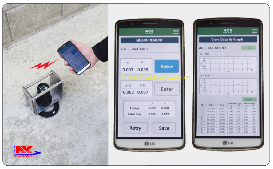 Các thiết bị điện tử và cảm biến được đặt trong một hộp kín, chống nước và tín hiệu đo được truyền tới sổ ghi qua Bluetooth. Thiết bị được trang bị hai cảm biến đo nghiêng MEMS có độ chính xác rất cao, chống shock.
